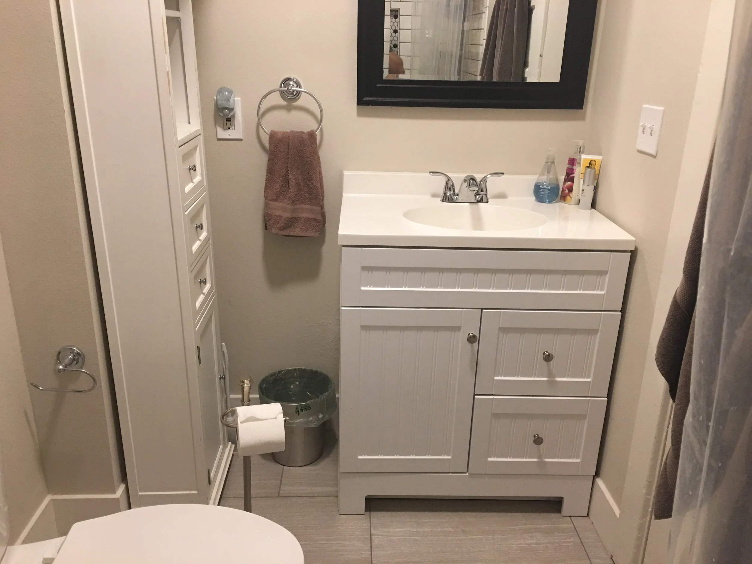 Old master bathroom had a tiny, builder grade vanity and lacked storage.